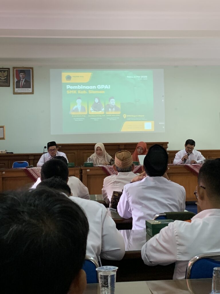 Sleman — Musyawarah Guru Mata Pelajaran (MGMP) Pendidikan Agama Islam (PAI) SMK Kabupaten Sleman menyelenggarakan kegiatan Pembinaan Guru Pendidikan Agama Islam (GPAI) pada Rabu, 11 Mei 2026, bertempat di SMK Negeri 1 Depok. Kegiatan ini diikuti oleh guru-guru PAI SMK se-Kabupaten Sleman sebagai upaya penguatan profesionalisme, pembinaan spiritual, serta koordinasi program pembelajaran dan administrasi keagamaan.